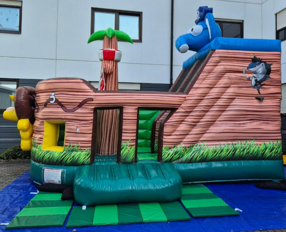 Abenteuer auf hoher See: unsere Schiff-Hüpfburg sorgt für Action und Spaß mit Rutsche.